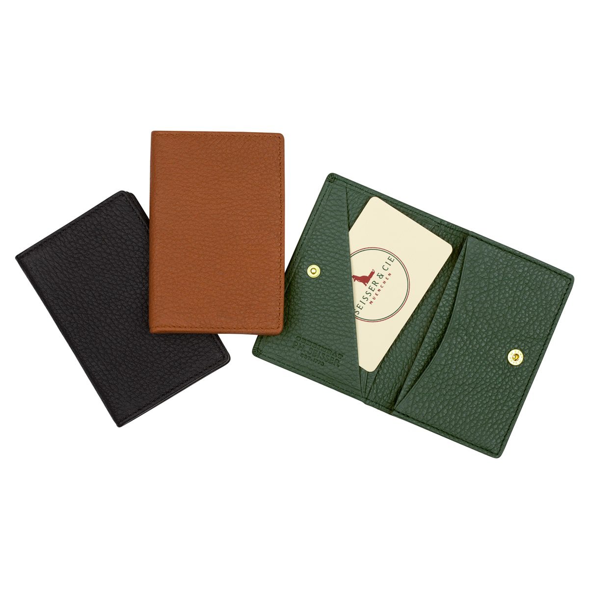 Das aufklappbare Kreditkarten-Etui von Seisser & Cie. aus München vereint elegante Handwerkskunst mit praktischer Funktionalität. Gefertigt aus feinem Hirschleder und italienischem Rindsleder, präsentiert sich diese kompakte Mini-Brieftasche mit einem verdeckten Druckknopfverschluss und den Maßen 7,5 × 11 × 1 cm. Innen bietet das Etui vier großzügige Fächer, davon zwei geschwungene, die Platz für Kreditkarten, Visitenkarten und Scheine bieten. Auf der rechten Seite befindet sich ein tieferes Fach mit Falte, das zusätzlichen Raum für mehrere Karten oder etwas Kleingeld schafft, während auf der linken Seite ein kleines, schräg aufgesetztes Ticketfach integriert ist. Das Innere ist mit echtem französischem Velours und deutschem Viskose-Futter ausgekleidet, die Blindprägung von Seisser & Cie. bzw. Geheimrat Seisser verleiht dem Etui seine charakteristische Eleganz. Wie alle Lederwaren des Hauses ist es weich gearbeitet, mit nur minimaler Verstärkung aus den feinsten französischen und italienischen Ledern.