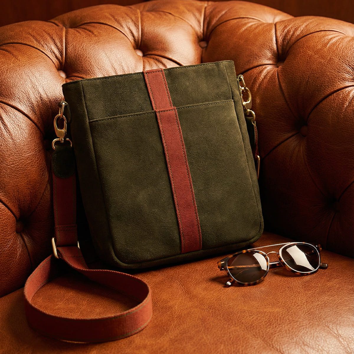 Beutel- und Umhängetasche „Urban Hunter“, (Vintage Hirschleder, sämisch, braun-oliv-grau)