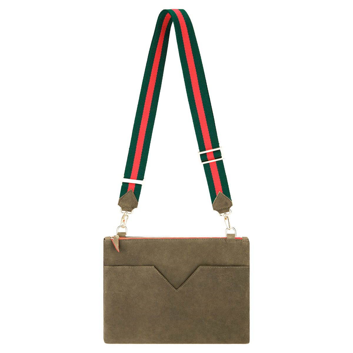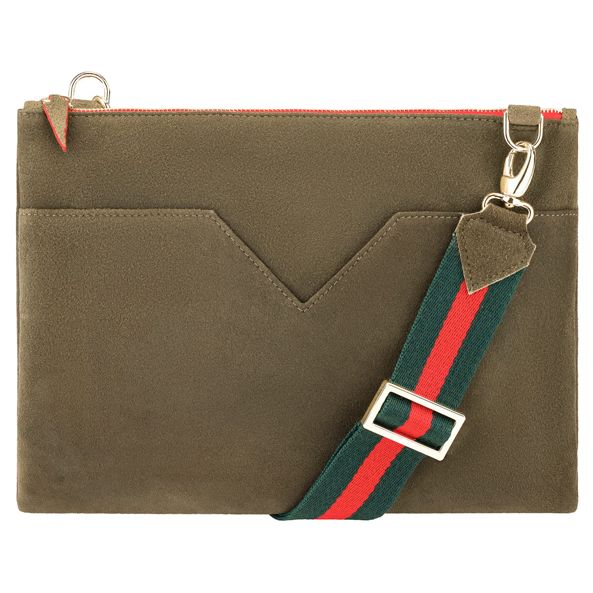 Clutch „Claire”, (Vintage Hirschleder, sämisch, braun-oliv-grau)