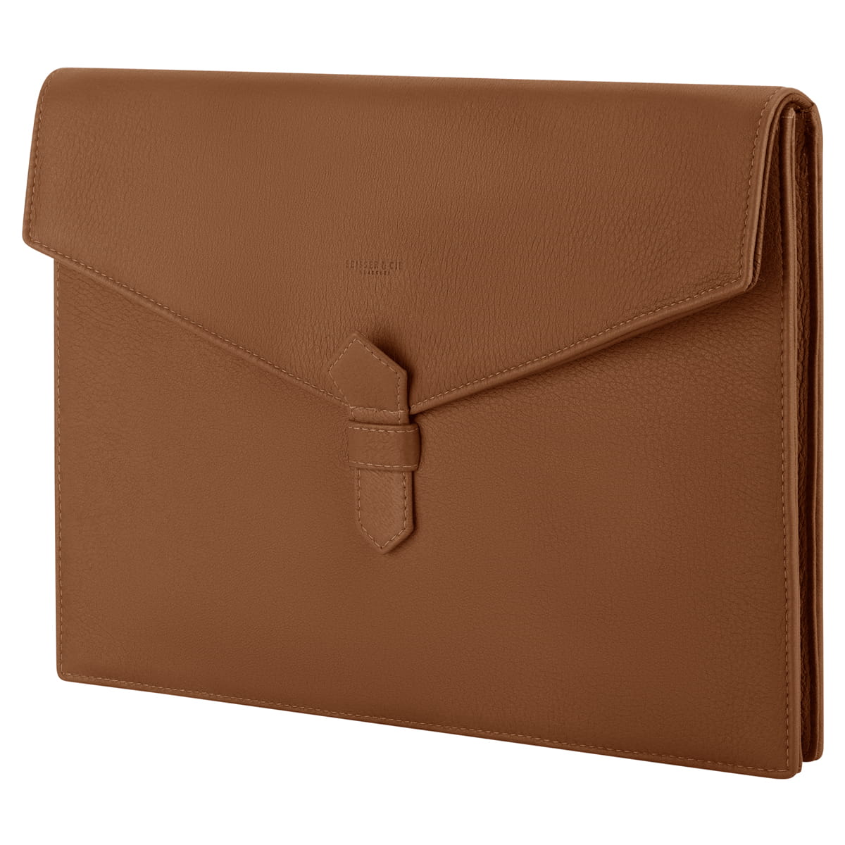 Die Unisex-Aktentasche „Giulia/Giulio“ ist eine sportlich-elegante Akten- und Dokumententasche aus feinstem extra weichem Hirschleder im klassischen Naturton Cognac – ein neu aufgelegter Klassiker aus den Seisser Ateliers.